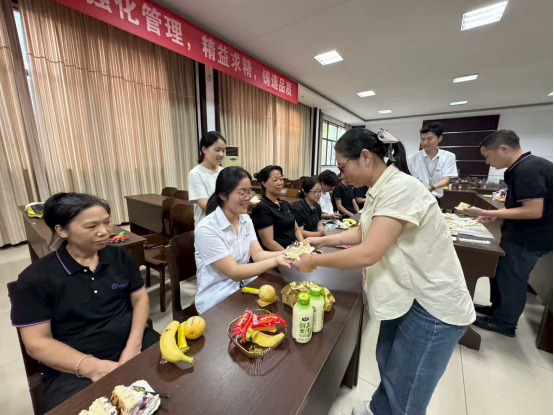 公司常務副總黃總帶領各位領導親臨現場,一走進活動場地,便面帶親切笑容向壽星們揮手致意。黃總拿起話筒,溫和的話語里滿是真誠:“今天看到大家齊聚一堂,特別開心!八月的壽星們在崗位上兢兢業業,為公司發展添磚加瓦,這份付出我們都看在眼里。在此代表公司,祝大家生日快樂,愿大家在工作中收獲成長,在生活中滿是幸福!”